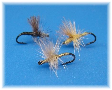 サイズは#22オンリーでバイビジブルが転がって仕方がない時、左写真のダーク(グリズリー)・ミディアム(ブルーダン)・ライト(ライトジンジャー)の3色からその日の気分で起用する。 |